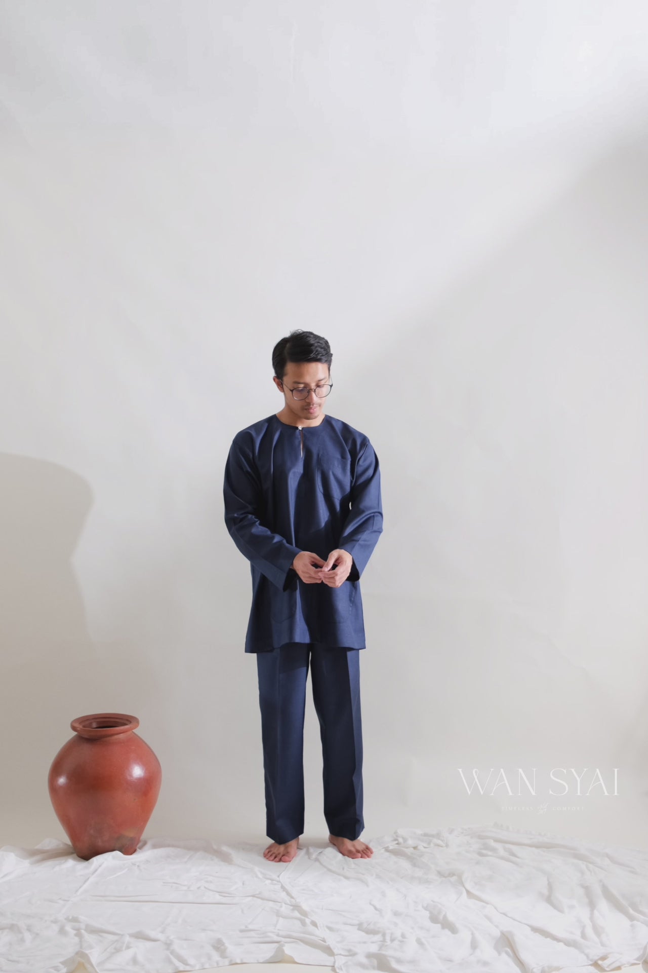 Navy BlueOur Classic Baju Melayu is expertly crafted with a premium blend of cotton and linen, carefully selected for maximum comfort.