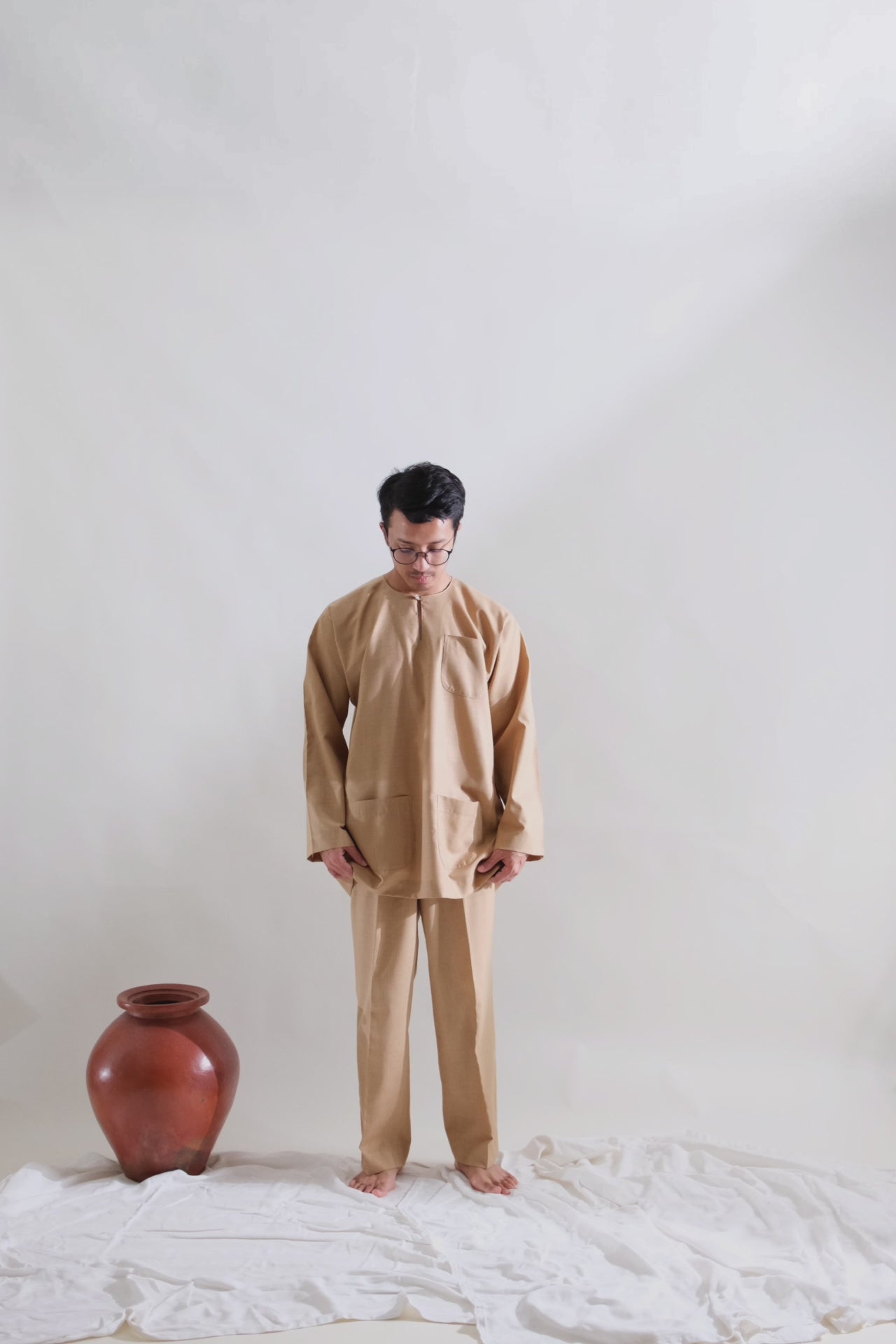 Nude BrownOur Classic Baju Melayu is expertly crafted with a premium blend of cotton and linen, carefully selected for maximum comfort.